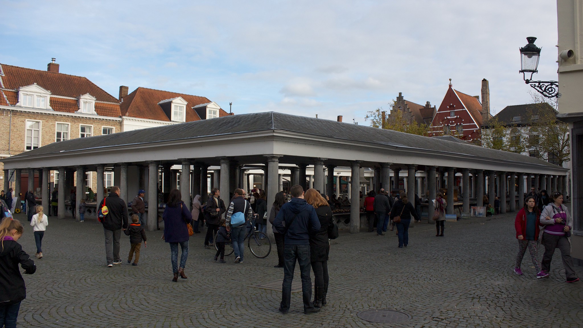 The continuity in some of these In Bruges filming locations are absolutely spot on. Ray runs through Vismarkt, a fish market with lots of stone columns, that he and Ken briefly passed when they first arrived in Bruges as it’s near Huidenvettersplein.